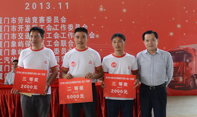 經(jīng)過理論培訓及考試,激烈場地駕駛、排故障比武,最終三十多名司機贏得行業(yè)高級工證書。象嶼股份旗下太平物流車隊的參賽選手獲得較好成績。陳建立和林本來分獲四、五名,將被市勞動競賽委員會授予“技術(shù)能手”榮譽稱號;范思光獲得第九名,陳民獲得第十四名。據(jù)了解,獲得第一名的選手將在明年4月份獲得廈門市人民政府授予的“五.一”勞動獎?wù)隆?span lang="EN-US">