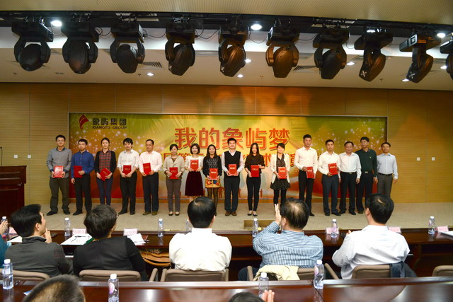 集團(tuán)公司王龍雛董事長、邵蕰默副書記、陳偉彬原副書記、象嶼保稅區(qū)管委會薛志宏處長、集團(tuán)公司劉信平副總裁、林志勇總裁助理等為征文、攝影、演講比賽獲獎(jiǎng)人員頒獎(jiǎng)。