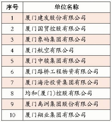 2014廈門(mén)服務(wù)業(yè)企業(yè)十強(qiáng)排行榜
