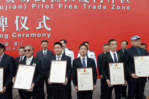 中國(guó)(福建)自由貿(mào)易試驗(yàn)區(qū)廈門(mén)片區(qū)在兩岸貿(mào)易中心舉行揭牌儀式