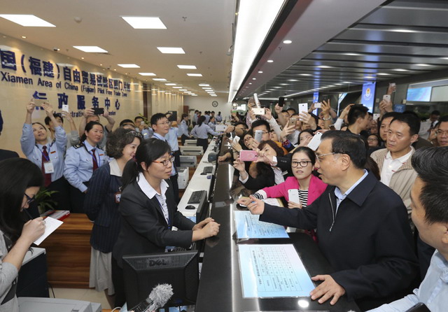 總理來了!由象嶼集團(tuán)開發(fā)運(yùn)營的兩岸貿(mào)易中心火了!李克強(qiáng)4月22日在福建自貿(mào)區(qū)廈門片區(qū)象嶼綜合服務(wù)大廳了解簡政放權(quán)和商事制度改革等情況??偫碚f,自貿(mào)區(qū)不是政策洼地而是改革高地,要大膽闖勇于創(chuàng)。昨天你們掛牌,今天我來為你們助力!
