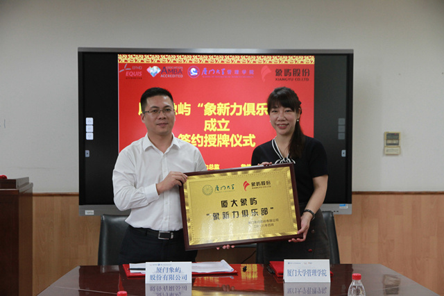 4月12日,廈門大學(xué)管理學(xué)院授牌象嶼股份成立“學(xué)生就業(yè)實(shí)習(xí)基地”,象嶼股份依托廈大管理學(xué)院設(shè)立廈大象嶼“象新力俱樂部”簽約/授牌儀式隆重舉行。廈大管理學(xué)院院長葉建明、黨委副書記洪秋霞、象嶼股份黨委書記、總經(jīng)理鄧啟東、象嶼股份人力資源總監(jiān)詹傳長等雙方領(lǐng)導(dǎo)出席見證了本次合作儀式。