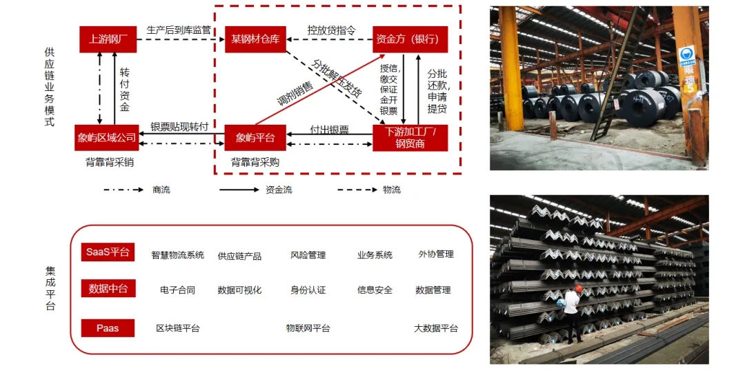 象嶼股份作為供應(yīng)鏈核心企業(yè),借助IOT(物聯(lián)網(wǎng))、區(qū)塊鏈、AI等技術(shù),圍繞塑化、鋁產(chǎn)品、鋼材等產(chǎn)品進行倉單質(zhì)押融資,通過數(shù)字化建設(shè),輔助背書客戶資信、貨權(quán)監(jiān)管和輔助銷售,獲取資金方的認可,幫助中小微企業(yè)客戶增信,解決中小微企業(yè)融資難的問題。目前象嶼智慧物流平臺已獲得建行總行、普洛斯等多家金融機構(gòu)數(shù)字化監(jiān)管倉準(zhǔn)入,《人民日報》等媒體也作了專題報道。